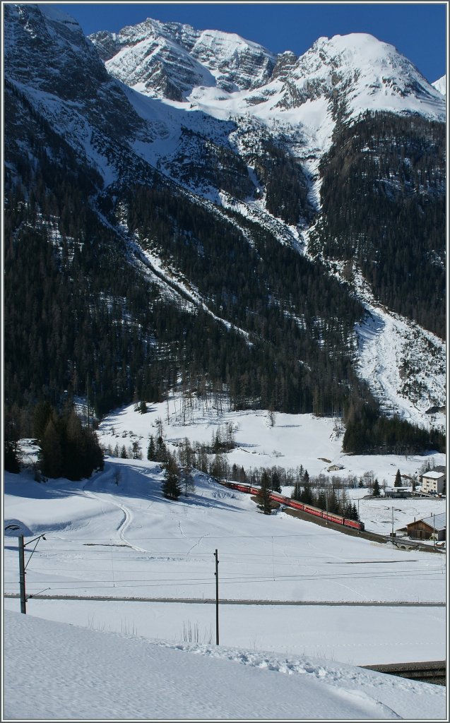 Auch das ist RhB: im Flachland ist ein Vorortszug Richtung Chur unterwegs.